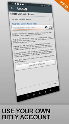 - Use your own Bitly account to avoid AmALfi's short links allowance and to access your own short link analytics.