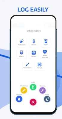 Log 4 values → BGL (Blood glucose level), medication intake, food intake and sleep