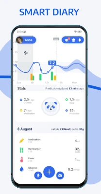Set yourself intelligent reminders for medication intake, eating, measuring your blood sugar level, medication dosage and water consumption.