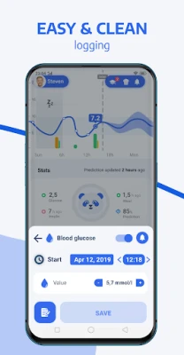 After 2 days of logging the AI algorithm will show your blood glucose level with a curve.