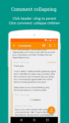 Not only collapsible children comments (press comment content), it can also collapse comments between itself and it's parent (press comment info bar).