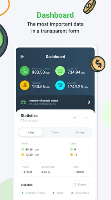 Our app provides perfect capabilities for an affiliate marketing publisher who knows their stuff. Check out current programs, news, statistics, and track your earnings. Having your account always at hand will give you the best control over your actions.
