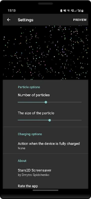 Bring a tiny moment of wonder to every charge. Stars2D Screensaver turns your screen into a smooth, hypnotic starfield while your device is docked or charging — and notifies you when charging ends with a gentle vibration and a pleasant pop sound. The app includes a standard launcher icon: tap it to open your device’s Screen saver / Dream settings.