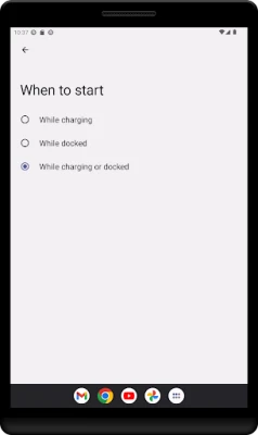 3. Select Stars2D as your Screen saver (Daydream) and plug in or dock your device. When charging ends, you’ll get the charge-end alert while the starfield runs during charging/docked.